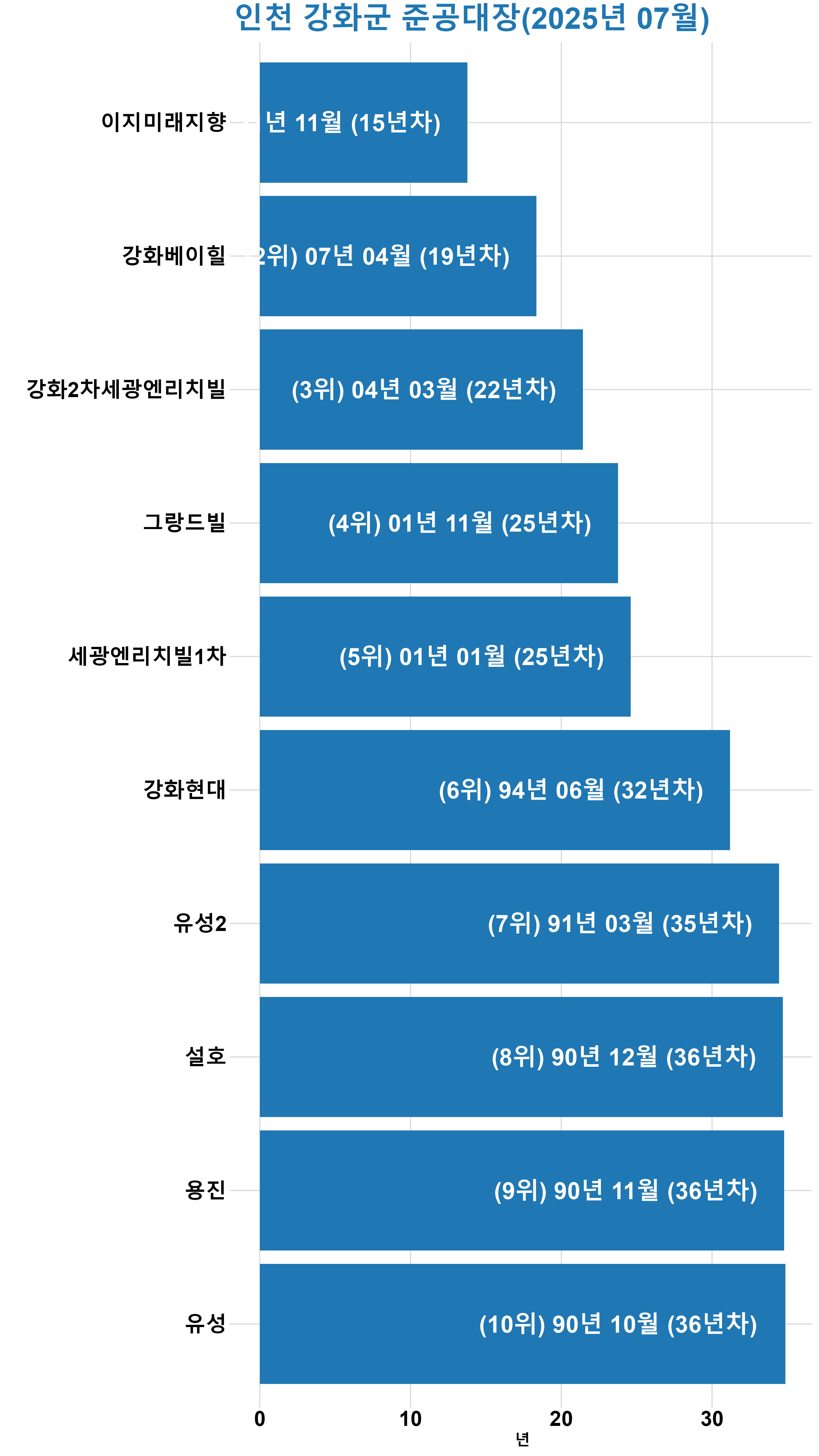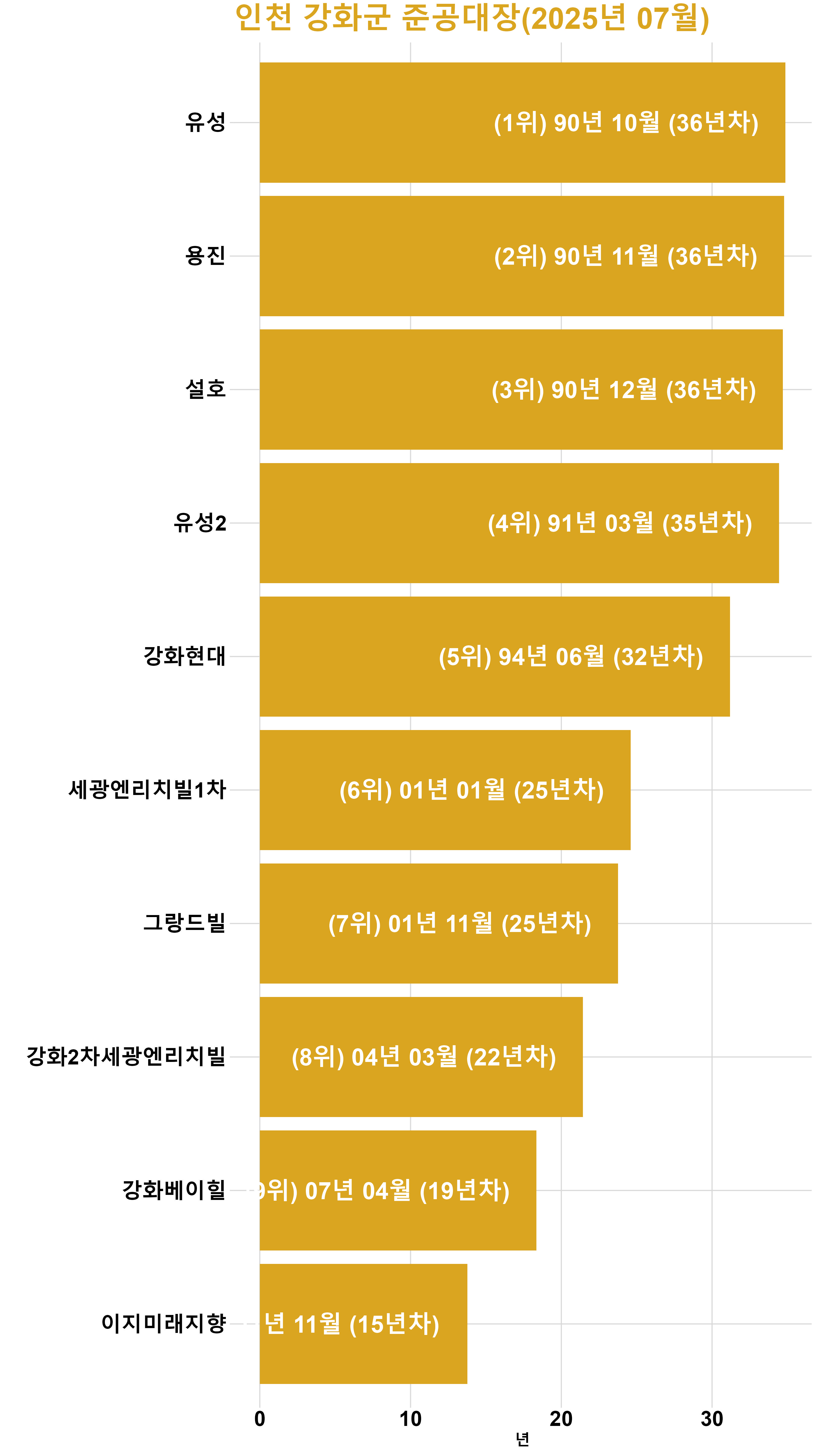 | 10 | 강화군 강화읍 | 용진 | 90년 11월 (36년차) | 55세대 | 327만원 | 40.47억 |