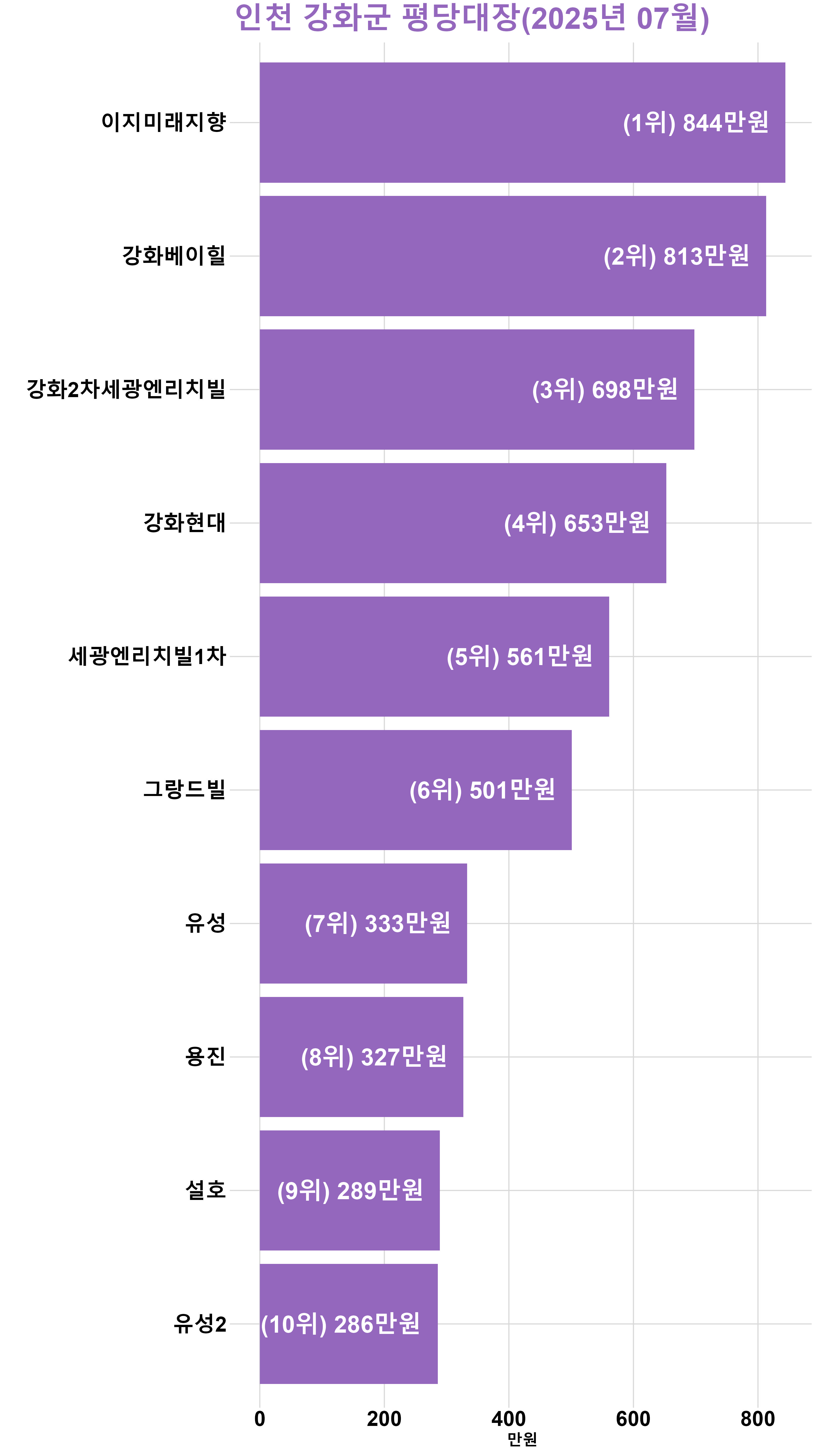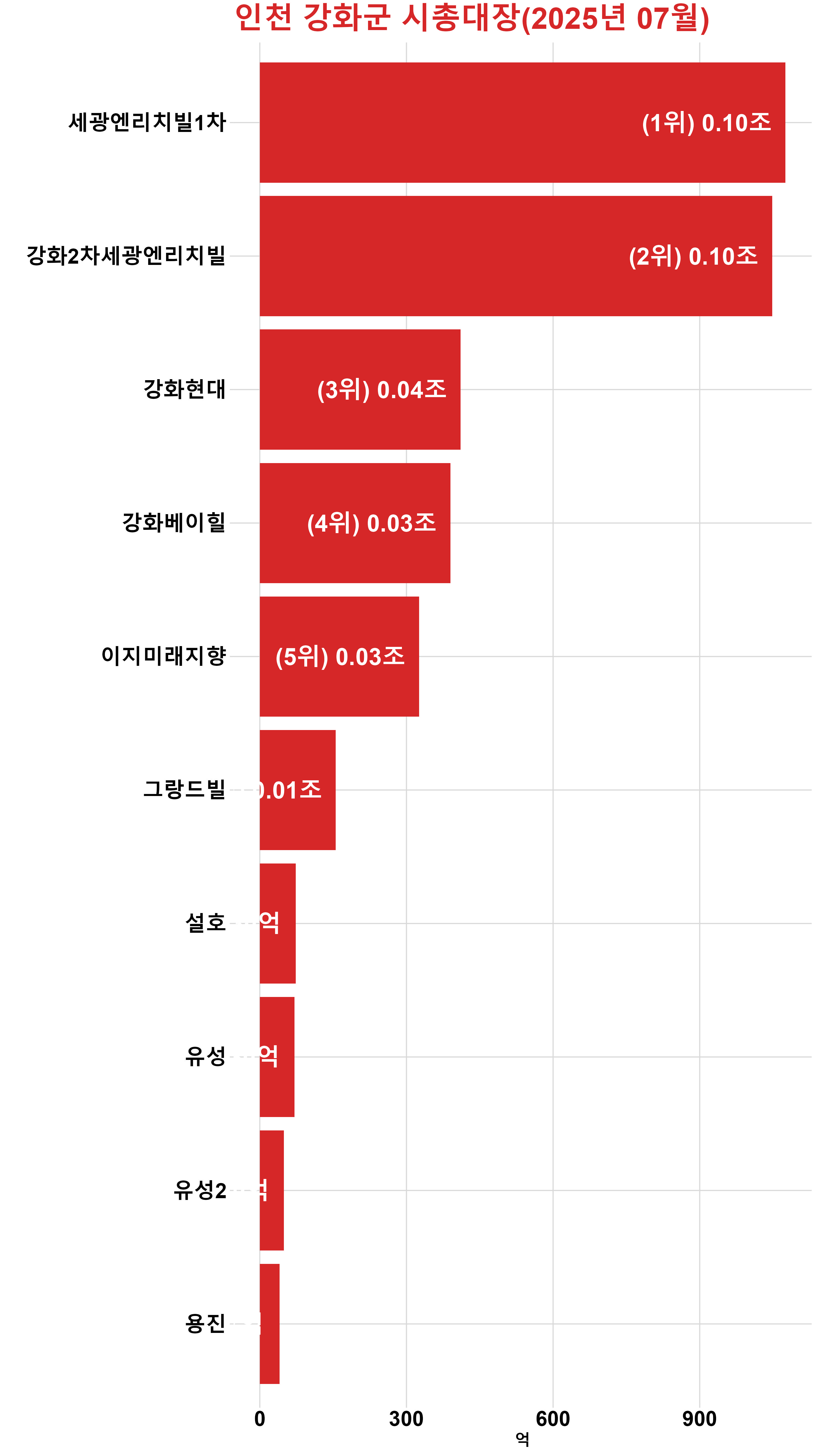 | 4 | 강화군 강화읍 | 강화베이힐 | 07년 04월 (19년차) | 179세대 | 813만원 | 0.03조 |