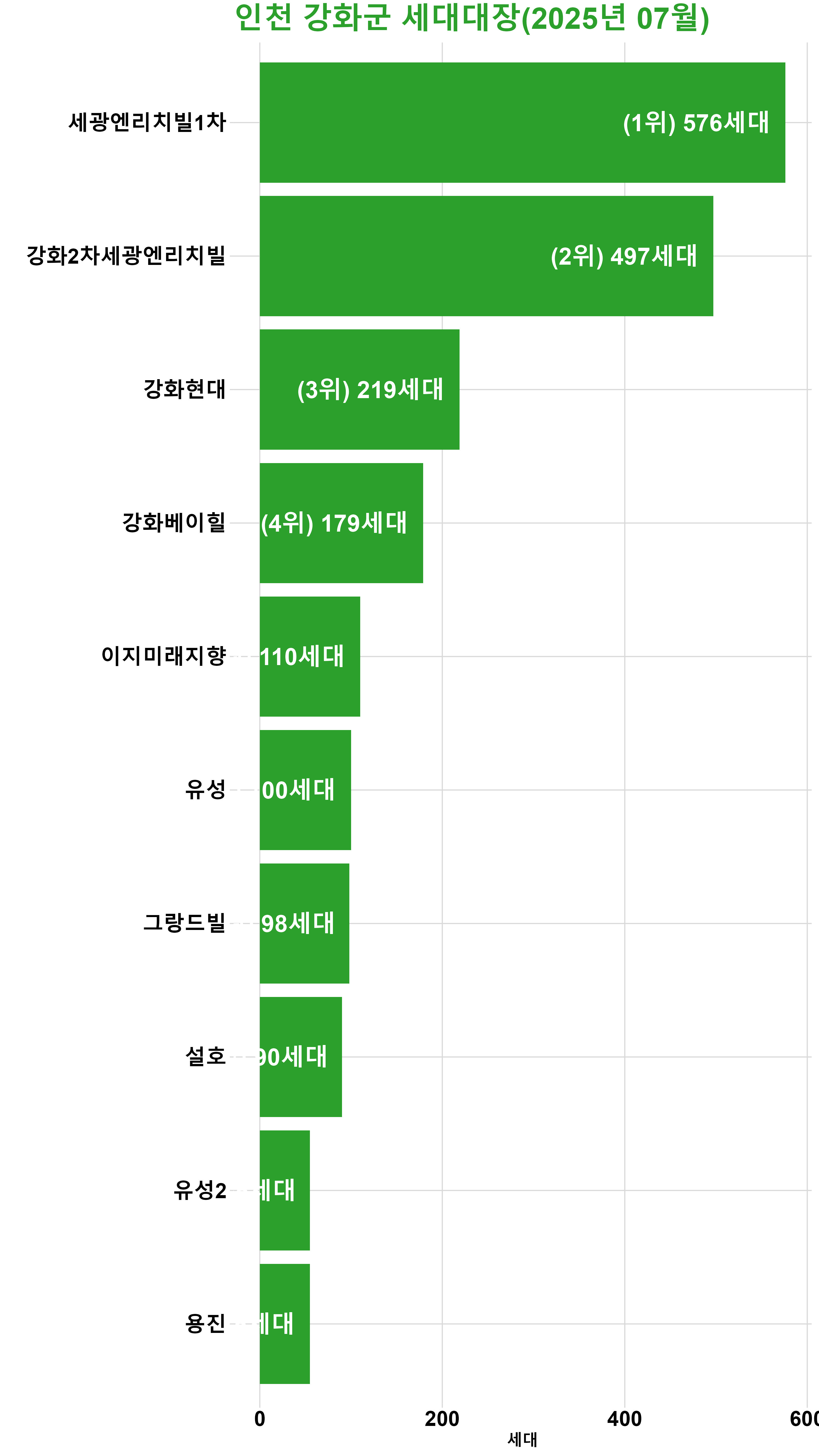 | 1 | 강화군 선원면 | 세광엔리치빌1차 | 01년 01월 (25년차) | 576세대 | 561만원 | 0.10조 |